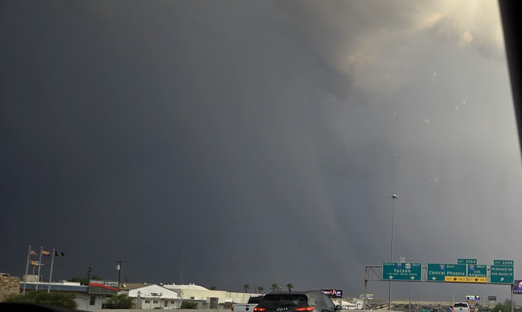 A severe thunderstorm popped up on September 1, 2025 in Cave Creek, Arizona. The storm produced small hail, 50mph winds and a mini dust storm.