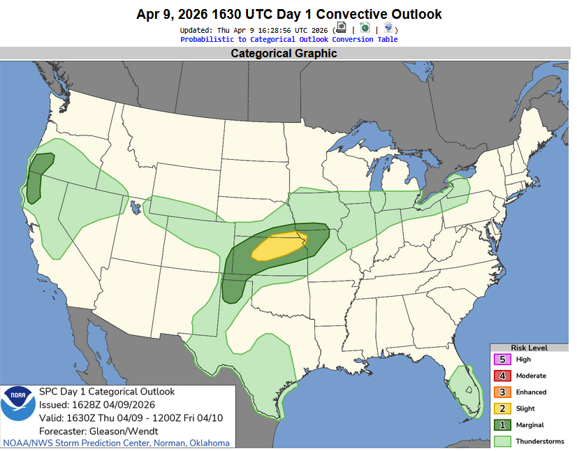 A Slight Risk, depicted by the Storm Prediction Center graphic below, was draped across central Kansas and off to the northeast. Our target: Salina, Kansas.