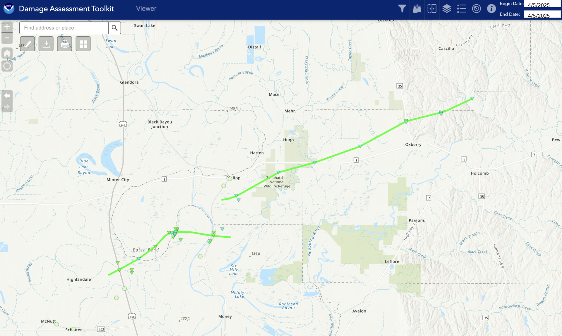 The NWS damage survey rated the initial dusty tornado as EF-1. It looks like that one then handed off to a new EF-1 tornado that was responsible for the damage path across Route 8. After a tough few days it was an encouraging end point with an exciting 15 hours or so from the Arkansas QLCS tornadoes overnight to this odd dust barrel tornado in Mississippi.