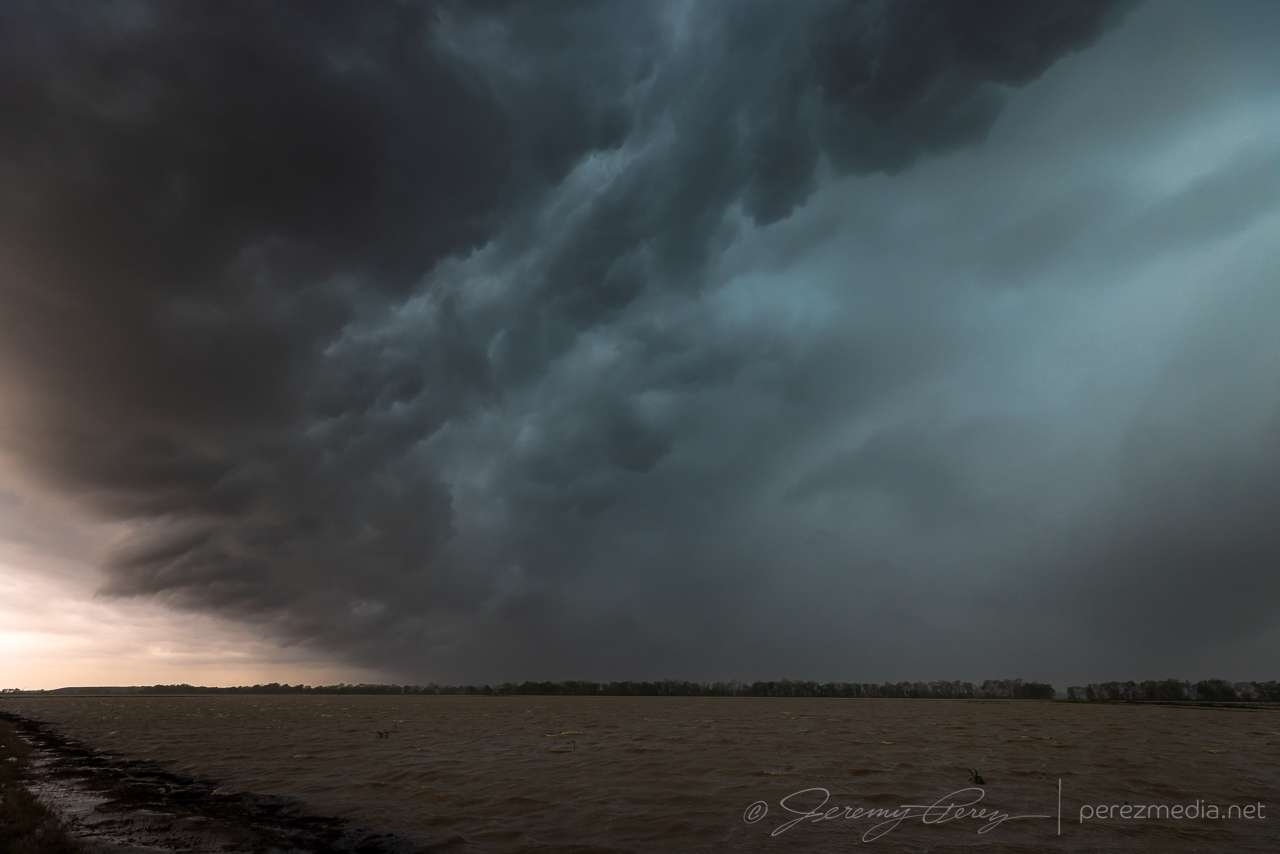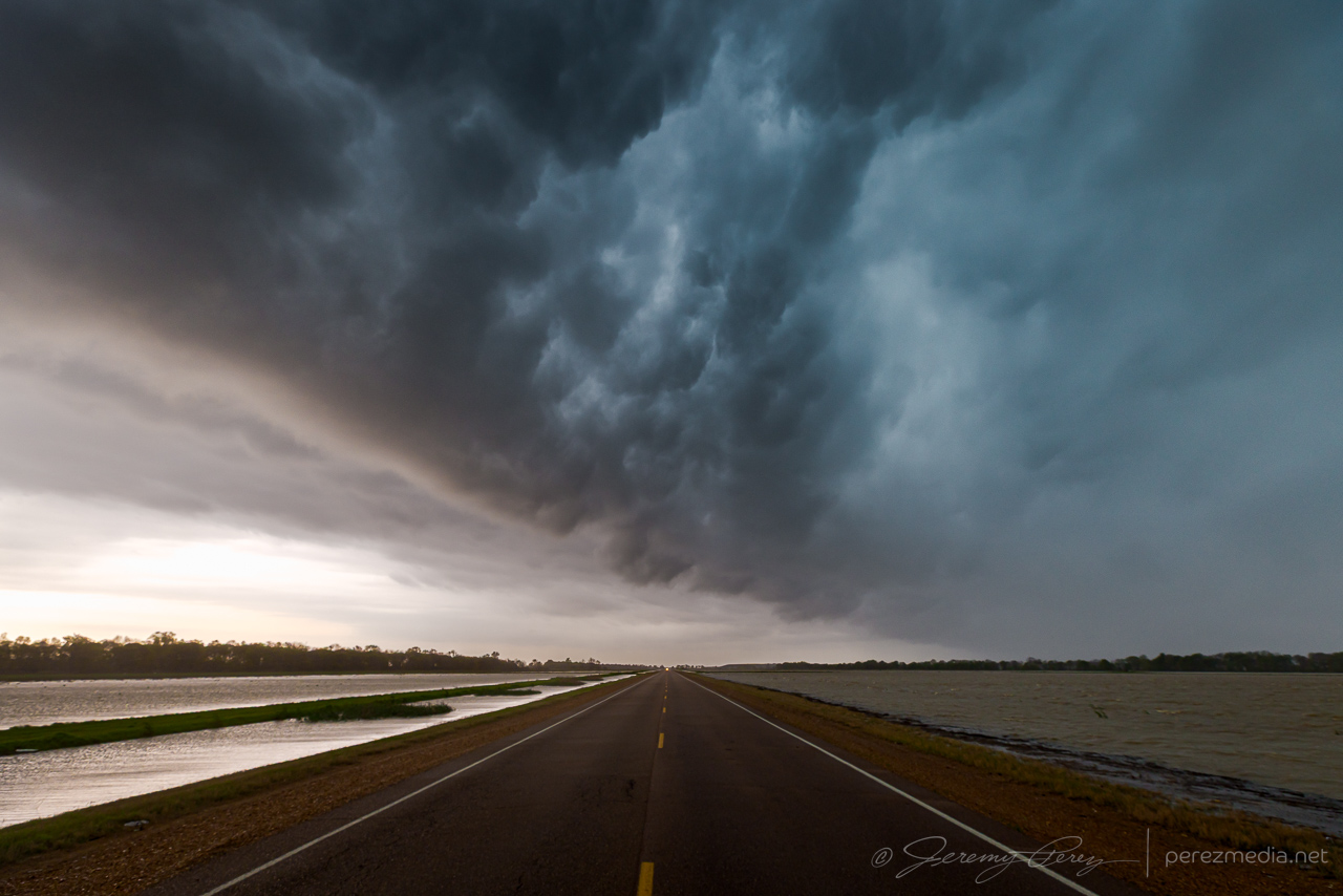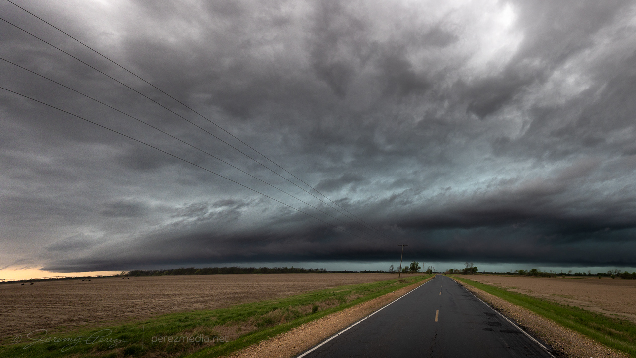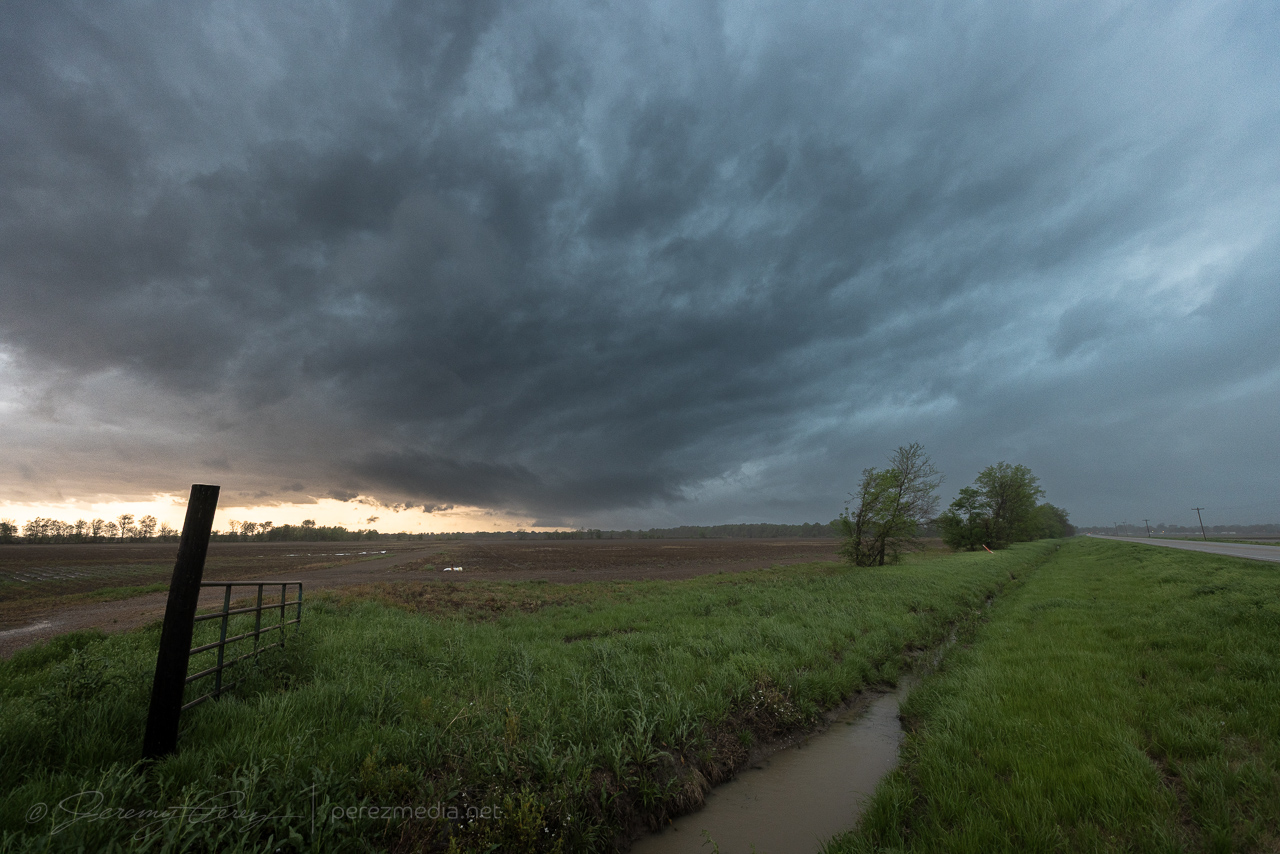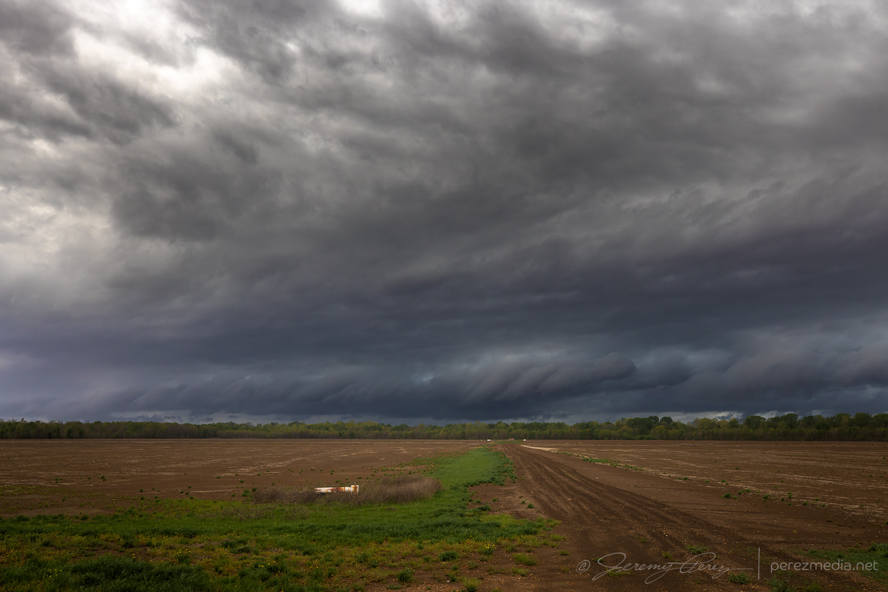 Fresh off an amateur damage survey around Wynne and Earle, Arkansas, I headed into Mississippi to intercept a line of storms moving across the river. Embedded supercells were the most I could count on, I figured, and I just worked on zipping down the line from Glover to Banks to Falcon then Eaglesnest. Shelf clouds and rain-obscured lightning dressed up the marshy landscape in the flood plain.